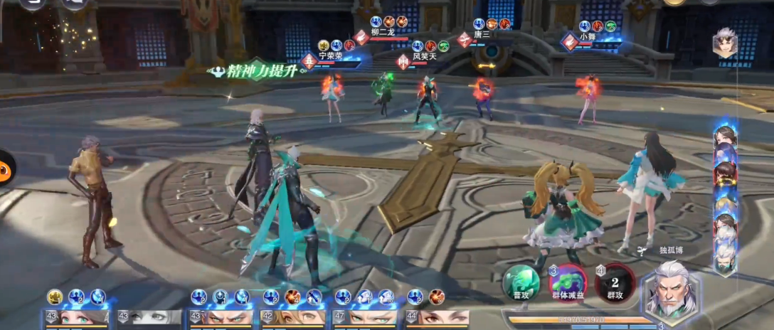 想通关巅峰演武宁荣荣,需要面对杨无敌的单体爆发威胁,需通过火舞、独孤博和戴沐白的控制技能使其长期处于眩晕、沉默或嘲讽状态,同时宁荣荣的七宝之护能有效提升队伍生存能力。唐昊的群体爆发则需要更严格的控制链,必须确保其始终处于魂力不足或行动受限状态,火舞的抗拒火环与独孤博的诛心技能在此环节尤为关键。秦明的火盾机制需优先处理,独孤博第二魂技诛心具有概率破除火盾的特性,这是开局建立优势的重要前提。
