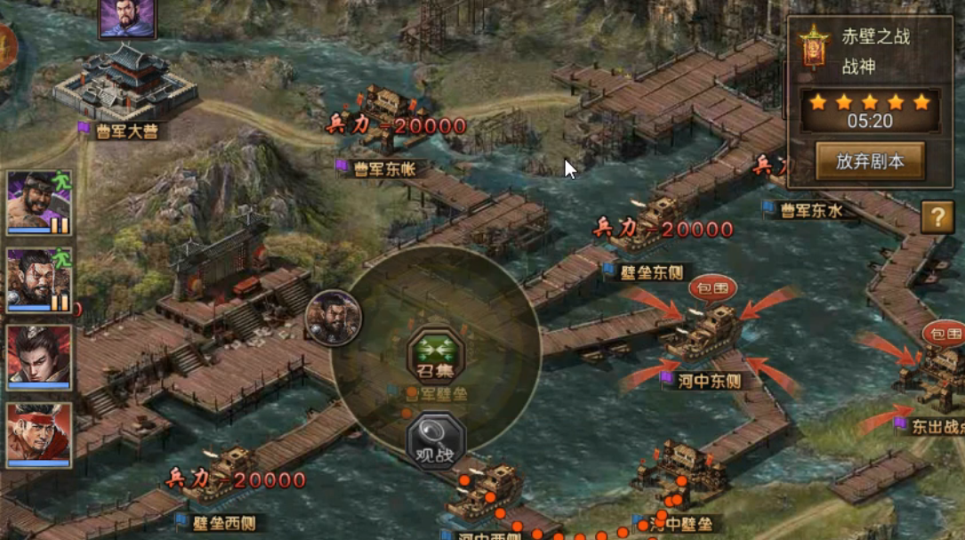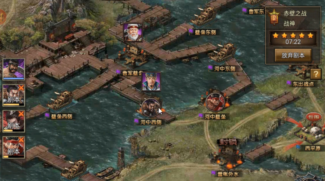 赤壁之战副本的关键在于路线规划和事件处理顺序。简单和普通难度可沿我军大营→东平原→曹军西水→曹军西帐→曹军大营的路线推进,而困难和地狱难度需额外占领华容道。战神难度还需分兵攻打七星坛,并在河中西侧防守三分钟以完成草船借箭。