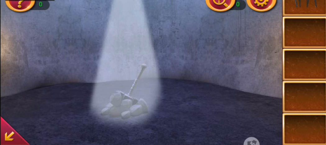 进入左侧的内室后,玩家需要进行关键的道具组合操作。将之前获得的盾牌和砍下的树枝结合在一起,制作成一个能够有效遮挡光线的装置。随后将这个组合物品放置在锤子的上方,利用它来阻挡光线照射,从而安全地取得锤子这件重要工具。最后一步是使用获取的锤子去破坏场景中央的障碍石块。玩家只需操控锤子对准石块进行敲击,就能顺利打通出口完成本关卡的所有挑战。