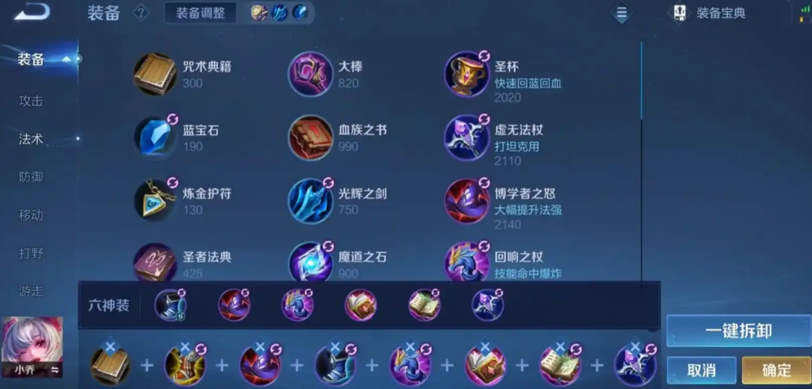 出装顺序一般是先出秘法之靴增加移速和前期法穿,然后做回响之杖来提升爆发和清线能力,接着补上博学者之怒让法强产生质变,中后期做出虚无法杖来应对敌方的魔抗装备,第五件可以选择辉月这件关键的保命装备,最后用贤者之书来补足极限的法术强度和生命值。这套出装成型后,小乔的技能伤害会变得非常恐怖,一扇子打在脆皮身上可能直接掉半管血以上哦。