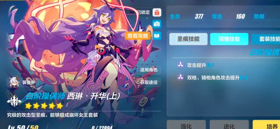 目前公认的毕业级圣痕搭配首选是她的专属套装西琳·升华三件套。这套圣痕几乎是为空之律者量身定做,能够提供全面的物理增伤、暴击伤害提升以及攻击速度加成。其两件套效果可以在空之律者普攻生成空间核心这类召唤物时,轻松获得高额的全伤害提升,并且非常容易维持加成上限。三件套则进一步补充了暴击率与暴击伤害,让输出更加稳定且致命。套装提供的闪避冷却缩减能优化操作循环,攻速提升则让输出手感更为流畅,堪称绝配。