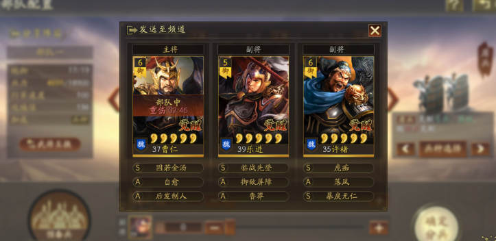 魏盾的核心武将通常包括曹操、徐晃和典韦,曹操作为主将能提升全队伤害并增强减伤效果,徐晃是主要的输出角色,他的被动技能叠满层数后伤害会显著提升,而典韦则负责保护主将,通过嘲讽和反击机制来稳定输出。如果没有曹操,也可以用曹仁或郭淮等武将替代,虽然强度会有所下降,但曹仁的嘲讽和洞察效果能让队伍更稳定。徐晃和于禁是常见的输出选择,于禁更适合打控制,而典韦的反击能打出不错的配合。这些武将在魏国阵营中属于盾S兵种,能享受到额外的属性加成,从而进一步提升整体防御能力。