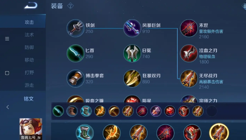 核心思路就是半肉,也就是输出装和防御装混合着出。常见的做法是先出一两件核心输出装备,比如急速战靴和末世,这两件装备能提供鲁班非常需要的攻击速度和续航能力。末世这件装备特别适合鲁班,因为它普通攻击附带敌人当前生命值百分比的伤害,即使你后面补肉装,打坦克也挺疼。出了这些之后,就可以考虑补防御装了。物理防御方面,不祥征兆和极寒风暴是热门选择,它们能提供高额护甲和生命值,并且被动效果能减少攻击者的攻速和移速,变相保护自己。如果对面法师伤害很高,那就出一件魔女斗篷来应对法术伤害。这样出下来,鲁班虽然秒人没那么快了,但对面想秒你也变得非常困难。