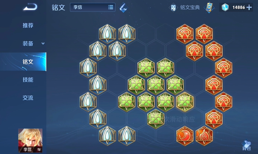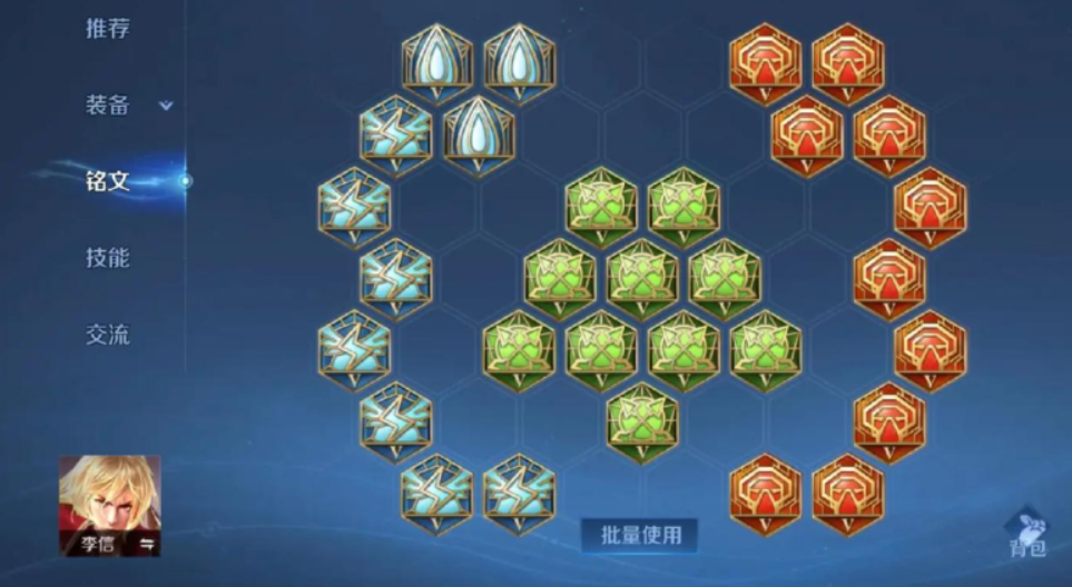 蓝色铭文的选择会稍微灵活一些,但总体思路是提升机动性和些许攻速。比较主流的一种方案是携带六个隐匿和四个狩猎。隐匿提供的物理攻击能进一步强化技能伤害,而移速加成对于光信来说非常实用,无论是赶路支援还是调整输出位置都很有帮助。狩猎则提供攻击速度和移速,这里带几个狩猎主要是为了优化操作手感,让技能后的强化普攻衔接起来更顺滑一些,避免有种卡顿的感觉。也有玩家会选择全部带隐匿来追求极限攻击力,但混合携带狩猎的方案通常被认为手感更佳,更适合大多数玩家。