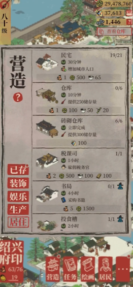 刷银子是江南百景图中提升经济的关键活动,玩家可以通过建造和升级特定生产建筑来获得铜钱。水井在升级到五级后生产时间减半,从而在短时间内产出更多铜钱,建议建造多个水井以最大化收益。画室作为赚钱建筑之一,满级后生产时间减少,能提供可观的收入。民宅设置税课司后会自动收取铜钱,减少手动操作的负担,满级民宅的收入更高。卖客栈香料每个能获得300铜钱,积累起来也是一笔不小的收入。外出探险时到达新区域会发现铜钱树,点击即可获得铜钱,而完成任务和成就通常会奖励铜钱,其中一些成就的奖励数额较大。