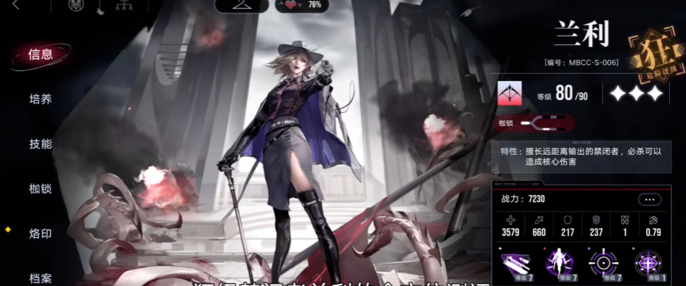 兰利的高出场率主要归因于其优秀的技能机制和泛用性。她的必杀技能够对指定范围内的敌人造成多段伤害,并且第一枪可以造成核心伤害,有效破除敌人的核心机制。被动技能在造成伤害时标记敌人,死亡时触发额外效果,增强了她的群体输出能力。兰利的攻击距离远,可以全站场攻击,适应各种战斗环境。这些特性使她在清杂、破核和团队支援方面表现出色,从而在多种阵容中占据一席之地。