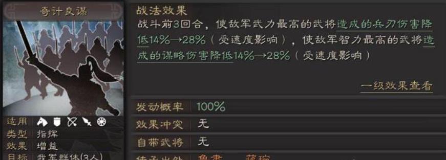 战法搭配是谋将玩法的关键,需遵循不重复负面效果、联动自带战法、兼顾输出与生存的原则,核心输出谋将可携带太平道法提升发动率与奇谋概率,搭配夺魂挟魄削弱敌方智力、武力双属性,再用上兵伐谋打出无视防御的谋略伤害,形成稳定的破核输出;控制型谋将优选威谋靡亢施加虚弱与叛逃,配合伪书相间制造混乱效果,让敌方自相攻击,大幅降低其作战能力;辅助谋将则用刮骨疗毒解除负面状态并治疗,婴城自守提供持续续航与减伤,草船借箭群体解控净化,应对敌方多控制阵容。同时要规避同类灼烧、中毒等持续伤害战法重复携带,避免效果覆盖浪费战法位置,让每一个战法都能发挥专属作用。