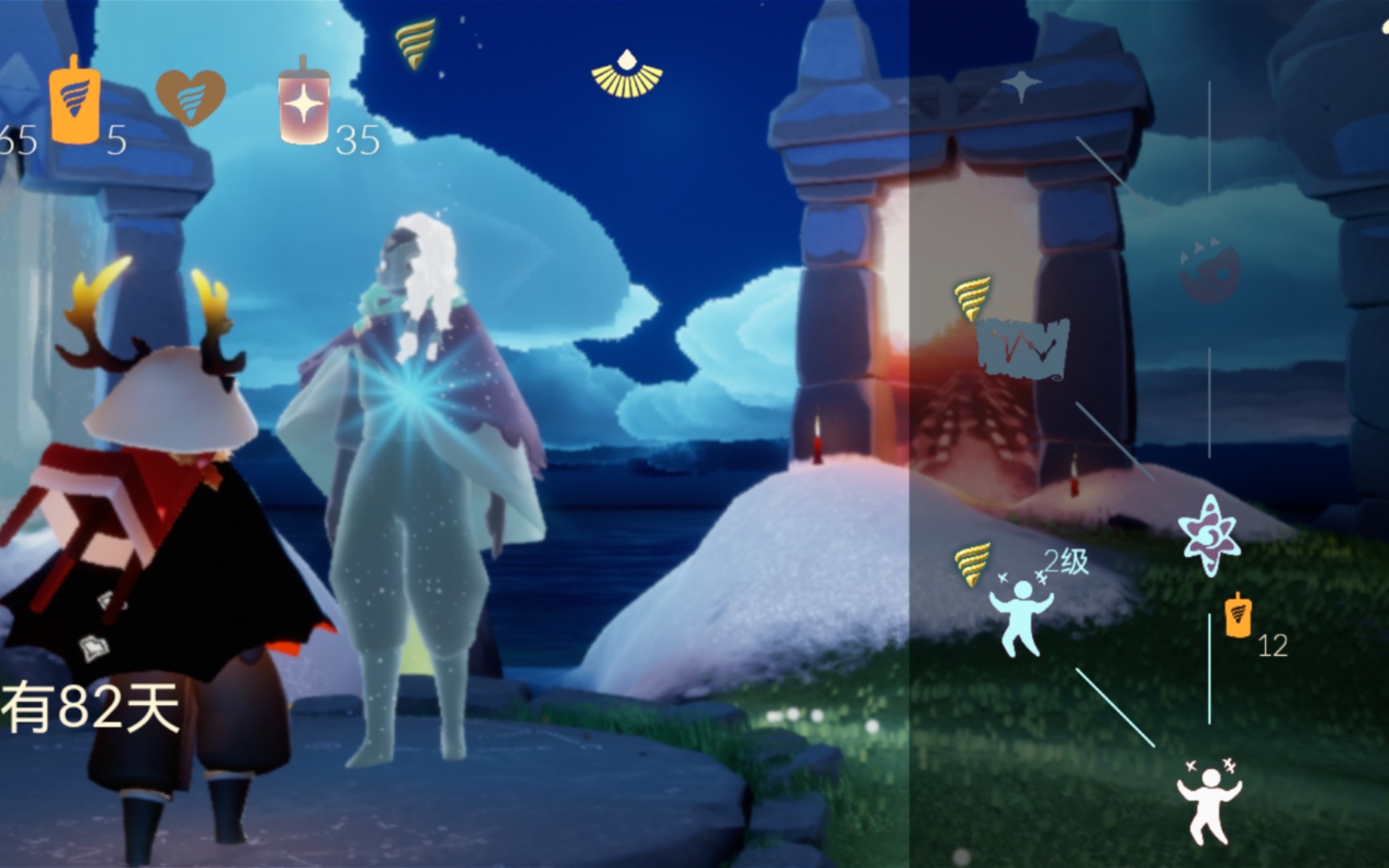 除常规坐船路线外,也可选择飞行捷径,从溜冰场直接起飞,沿左侧山脉向上飞行,借助山体与云层的气流攀升,可直接抵达前往雪隐峰的码头,节省坐船等待时间。此路线更适合翅膀数量充足、飞行技巧熟练的玩家,全程需精准控制方向,避开山体障碍,持续蹭云回能,能快速抵达目标区域。抵达落日崖后,平台视野开阔,可观赏橙粉色天际与落日景观,平台边缘有可进入的石缝空间,内部适合放置坐具休憩。从平台向下跳跃可落入下方水域,水面平静无危险,潜水后上浮会出现特殊光影效果,水域周边也适合打卡拍照。