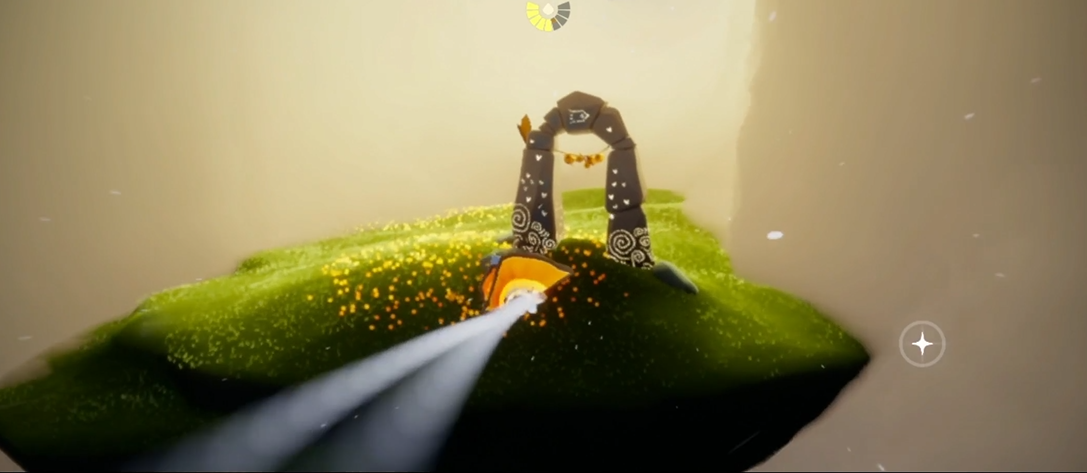 抵达霞谷终点大厅后,向左侧通道前进,进入光线较暗的密室区域,就能看到散发金色光点的指尖烟花先祖。靠近点燃先祖星火,按照路径完成回忆护送,全程要保持缓慢移动,跟随光圈轨迹推进,避免因飞行或快速跑动导致回忆进度中断,整个过程没有复杂机关与怪物干扰,专注沿着光点前进即可顺利抵达终点冥想点完成解锁。寻找先祖也可选择更高效的捷径,从遇境进入暮土,再从暮土终点神殿返回霞谷,落地后直接左转进入密室,相比常规跑完霞谷全图能节省大量时间。