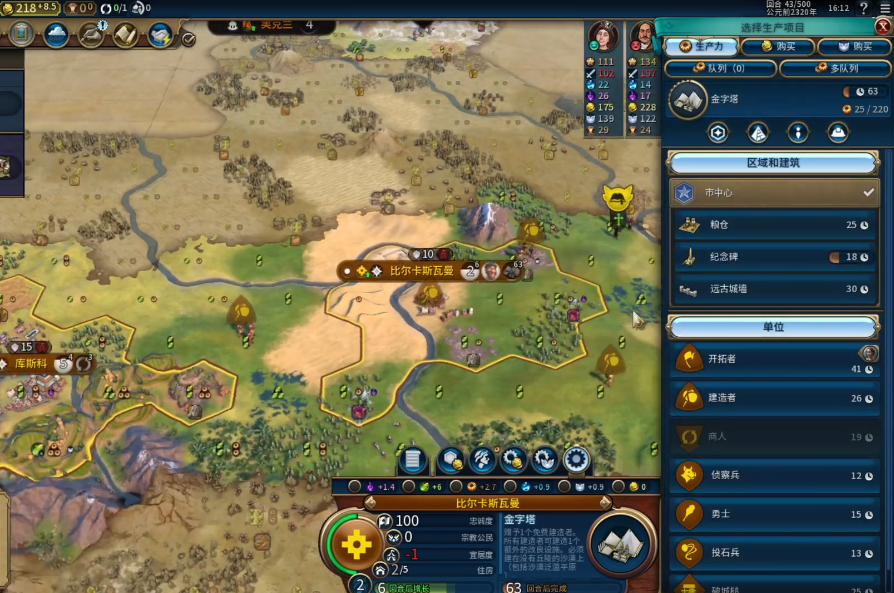 科技胜利同样是印加的可行选择,其优势在于山脉提供的早期科研加成和稳定发育能力。印加的米塔制度允许公民在山脉单元格工作,工业时代后山脉单元格额外提供产能,使得科技城可以兼顾科研和生产。学院区域的选址通常靠近山脉以利用高相邻加成,而梯田农场和水渠的联动能进一步提升城市产能。印加的快速铺城能力也为其科技胜利提供了更多城市支持,但需要注意科技胜利对后期航天城的高产能要求,需提前规划工业区和政策卡搭配。
