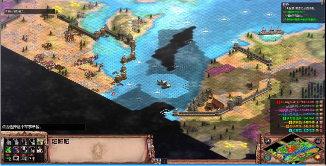 中期需分兵应对多线压力,主力部队南下清剿剩余敌人时,务必保留部分兵力协防基地。地图探索至关重要,隐藏资源点能提供额外黄金和石头,用于建造第二座城堡巩固防线。若资源允许,可训练僧侣治疗受伤单位,减少战损。
