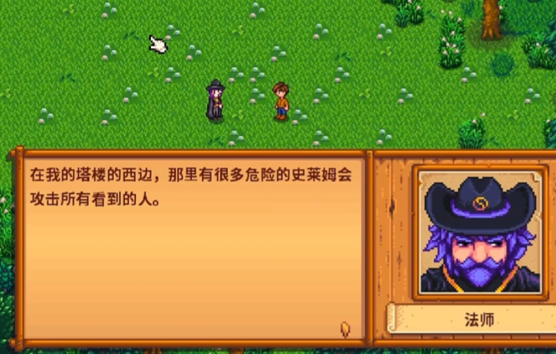 法师是居住在森林西部塔楼中的神秘NPC,掌握着多种魔法能力。与法师建立良好关系后,玩家可以解锁特殊功能,包括改变角色外观、获取魔法道具、完成社区中心任务等。法师的存在为游戏增添了神秘色彩和更多玩法可能性,是推进剧情和探索隐藏内容的关键角色之一。