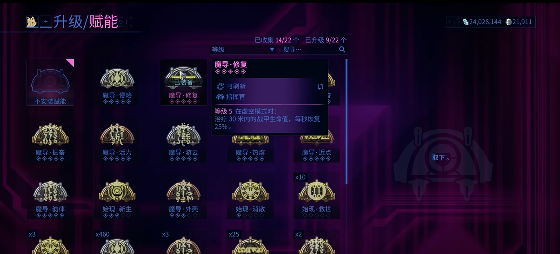 指挥官赋能与MOD配置强化生存与输出,星兆·活力提升生命值上限,星兆·蜕变增加护甲,双赋能组合让指挥官抗伤能力比肩战甲,适配各类高压场景。魔导游云扩大虚空冲刺撞击范围,魔导封锁冲刺控场,永恒湮灭、永恒流转提升增幅器伤害与弹药效率。MOD优先堆叠抗击倒、跑图速度、虚空冲刺效率,输出配置补充暴击、多重、射速属性,保证持续作战能力。专精技能可跨学派绑定,泽努里克回蓝搭配马杜莱增伤,瓦扎林保命配合乌奈鲁增伤,灵活组合适配不同任务需求。