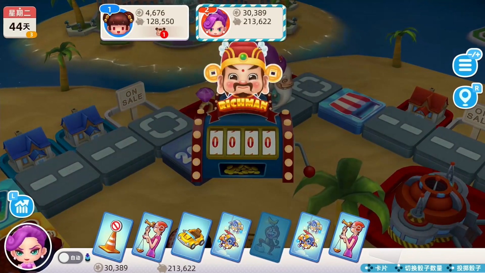 风险规避贯穿全程,利用入狱与梦游时间缩短的天赋,快速摆脱控制重回战场。遭遇大衰神时用天使卡抵消负面状态,进入医院或警察局前用梦游卡、转向卡调整方向。定期存入部分资金获取利息,避免现金被事件清空。后期优势扩大时,用传送卡与嫁祸卡组合精准打击现金最多的对手,迫使其破产。始终保持卡片与资金平衡,不盲目进攻也不保守发育,把技能与卡片效果最大化,稳步扩大优势直至胜利。